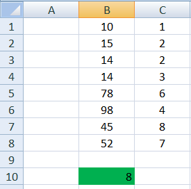 B2:B8 has seven numbers, as shown in the earlier photos, and we also put value directly in the calculation, so it takes eight.