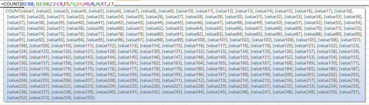You can specify up to 255 of these optional arguments like value 1, value2, value3,... ETC.